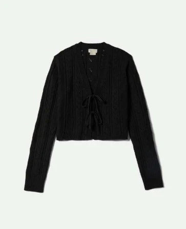 Brixton Womens Sweater Cropped Pointelle Tie Cardigan
