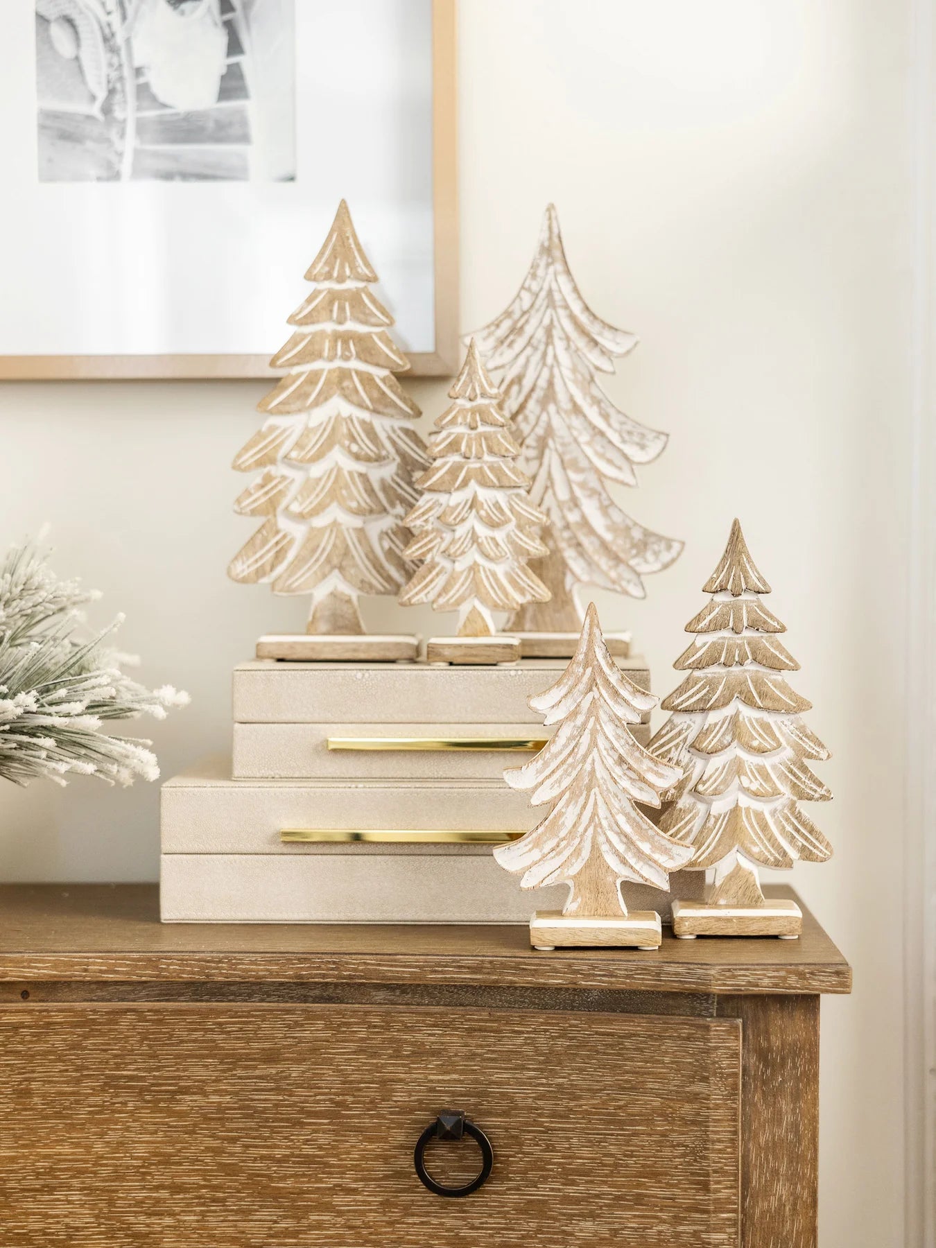 Bring a touch of natural beauty to your holiday décor with our Wood Pine Trees Decor. Crafted from natural wood with elegant white-washed detailing, these trees offer a timeless and cozy feel to any space. Perfect for mantel displays, table centerpieces, or as a standalone accent, they provide a versatile and stylish way to celebrate the season with a simple, refined look