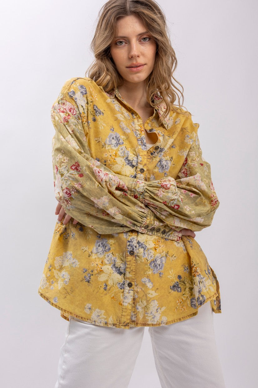 Embrace effortless style with this oversized floral print button-down shirt, crafted from soft cotton poplin with a relaxed mineral-washed finish. The timeless botanical pattern pairs perfectly with any wardrobe, while hidden side pockets add practical convenience. Lightweight and breathable, this versatile piece transitions seamlessly from casual days to laid-back evenings.