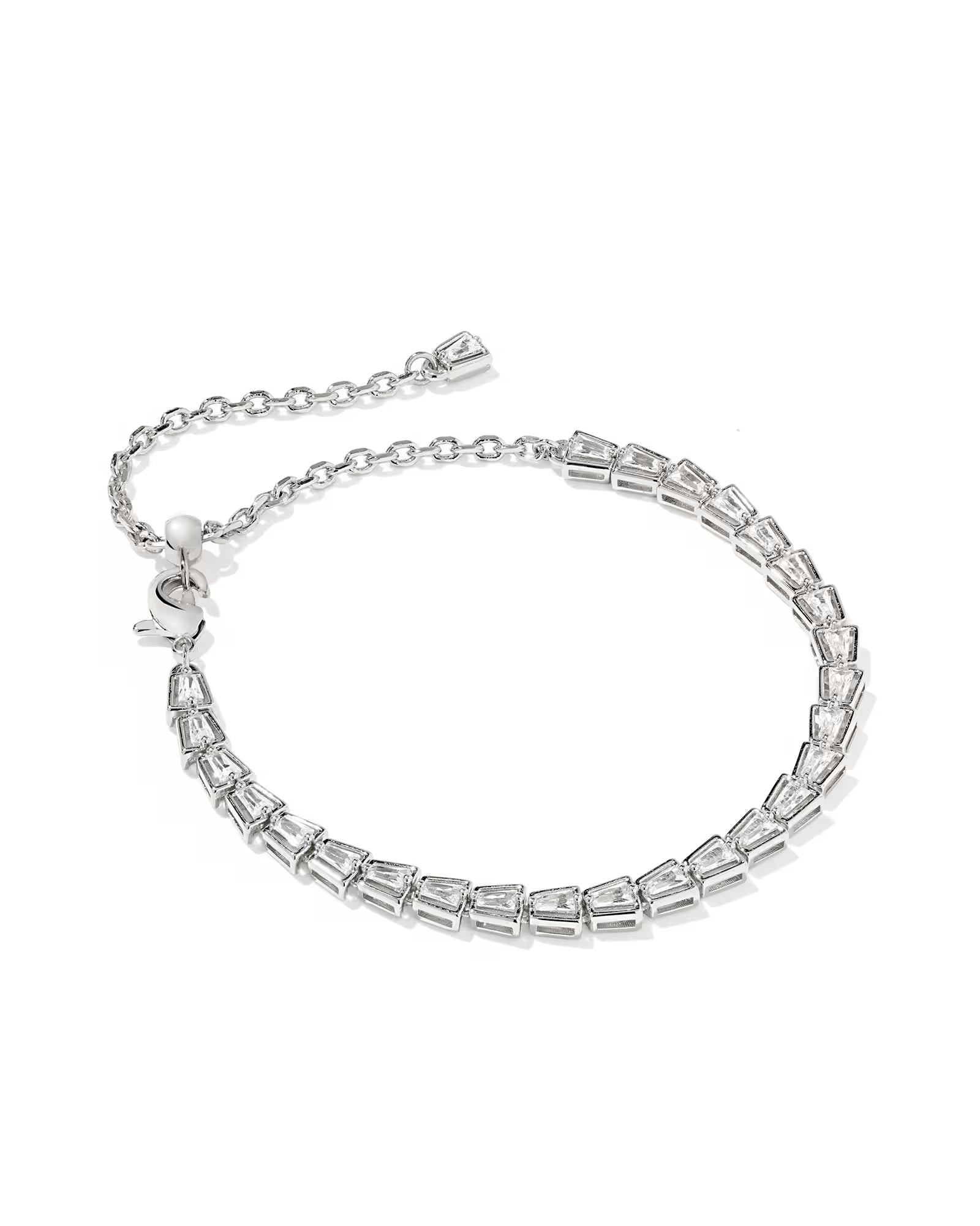 A style staple in every jewelry box, soon to be a go-to in your collection: It’s the Bella Silver Tennis Bracelet. This fresh take on the classic tennis bracelet silhouette is designed with cubic zirconia stones in a tapered baguette shape for sparkle that stuns from every angle. Styling tip: try pairing this bracelet with your favorite watch for a super chic look.