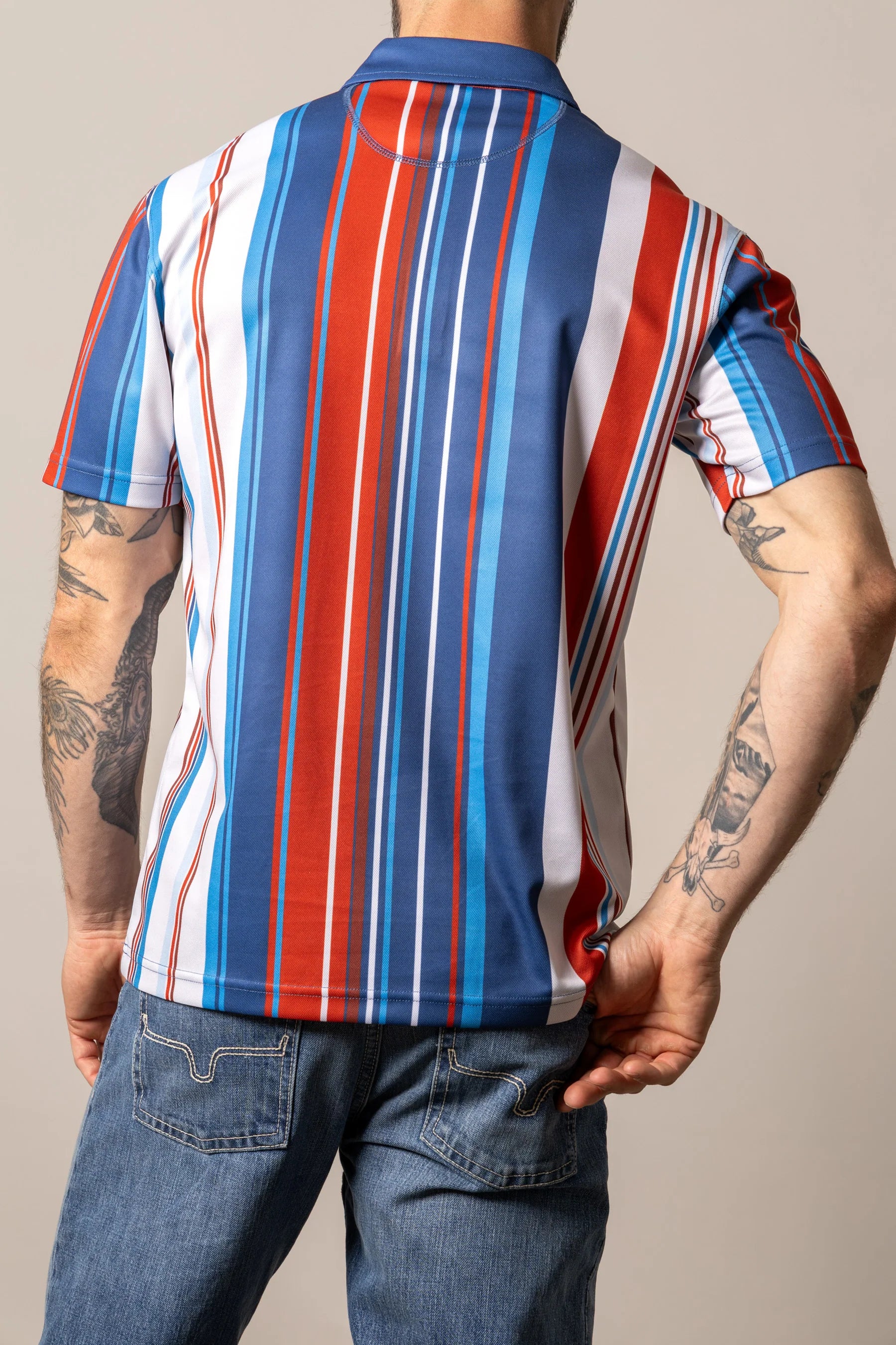 If you’re in need of a sharp and outstanding short-sleeve polo designed to make a statement, the Rein by Kimes Ranch is here. This pique knit polo features a bold all-over vertical stripe pattern that commands attention. It boasts a woven-in KR logo patch, while a simple button placket below a solid-colored collar adds a touch of classic refinement. The Rein is perfect for the man who wants to stand out from the crowd with undeniable style and confidence.