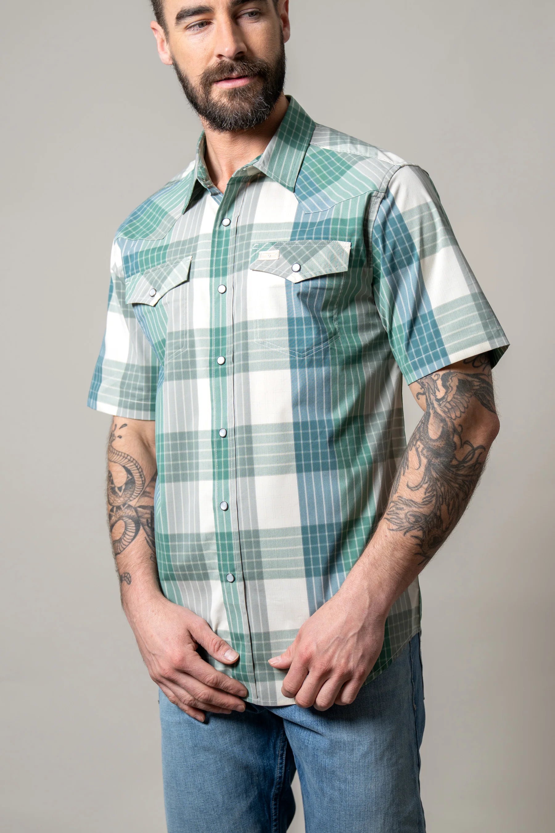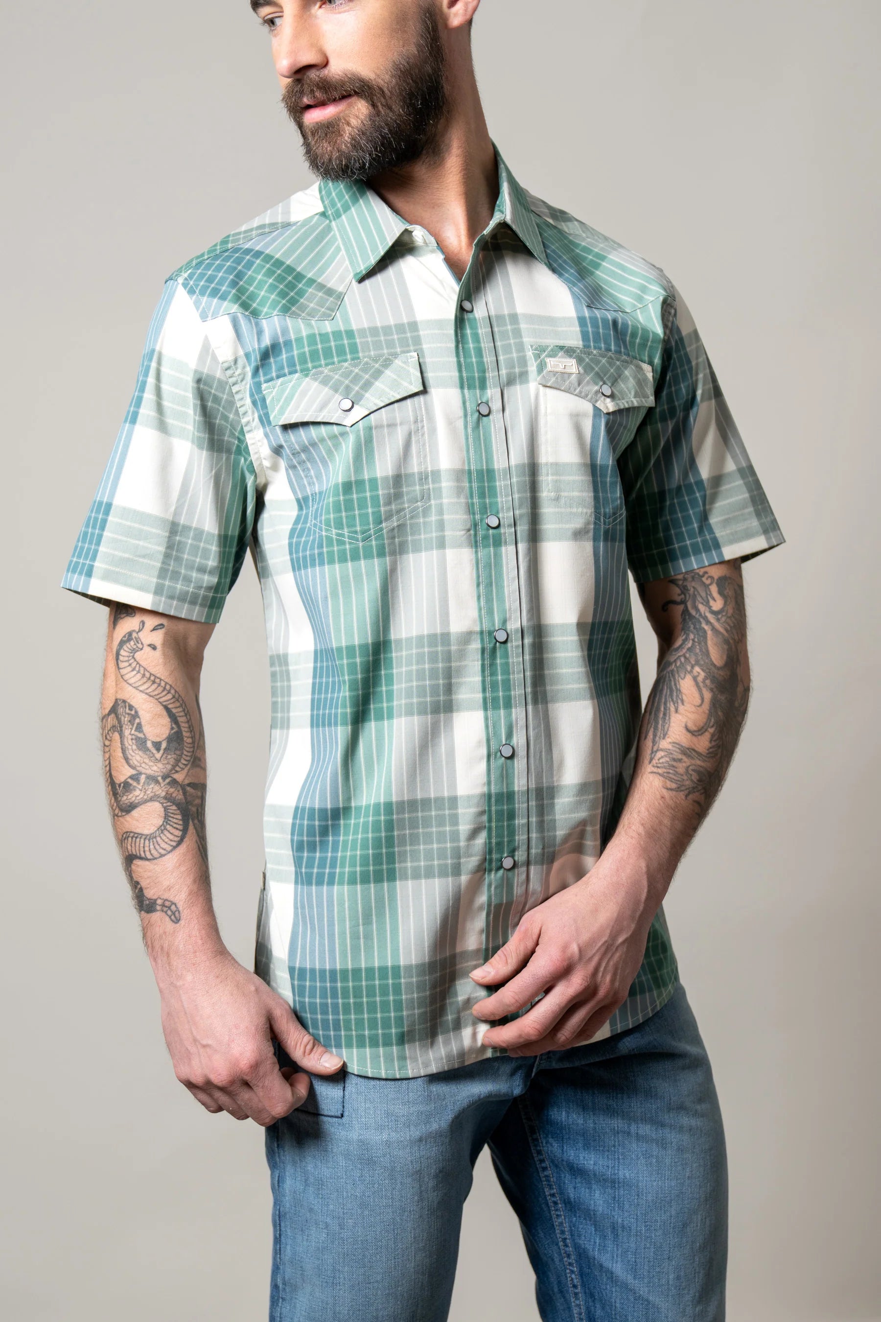 Step up your Western style with the Kimes Ranch Chico. This unique, small check plaid is featured in bold, stylish colors, going beyond a basic button-up. With pearl snap closures, dual flap chest pockets, and a Western yoke, it offers standout style without being overstated. You’ll be able to work hard with ease and comfort, thanks to the Coolmax technology within the material. The Chico will feel as good as it looks.