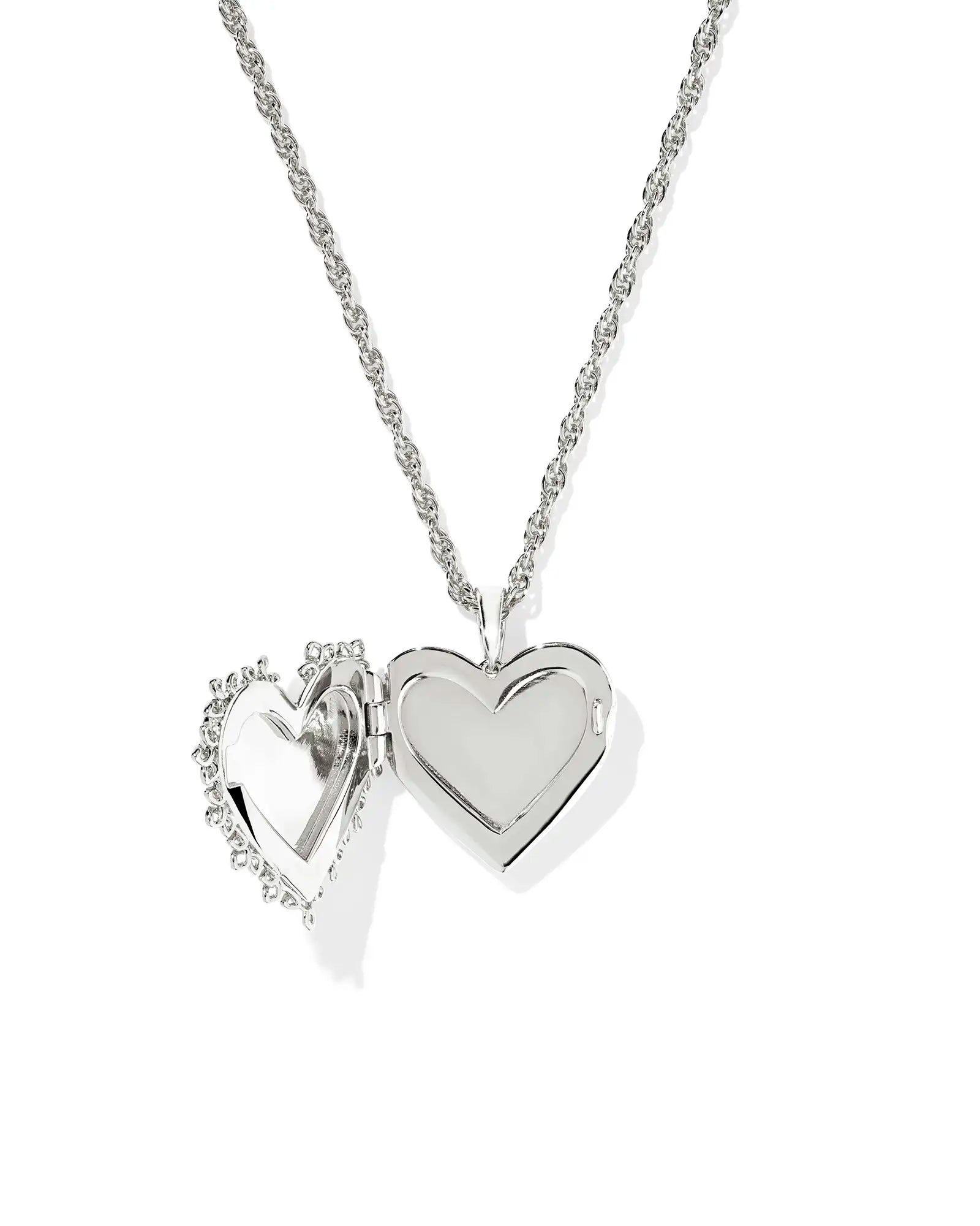 Get the ultimate vintage look with the Mallory Rose Silver Locket Short Pendant Necklace. Featuring a rose silhouette inspired by our signature medallion logo inside of a heart surrounded with lace, this piece is perfect for a sophisticated look or as an elegant touch for an everyday outfit—making it so ready to be your new favorite.