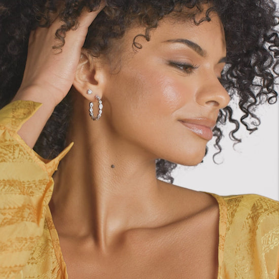 Vacation Mode: On. Not too big, not too small, these 1" Isla Hoops in simulated diamond are just right (and just dazzling enough to turn heads).