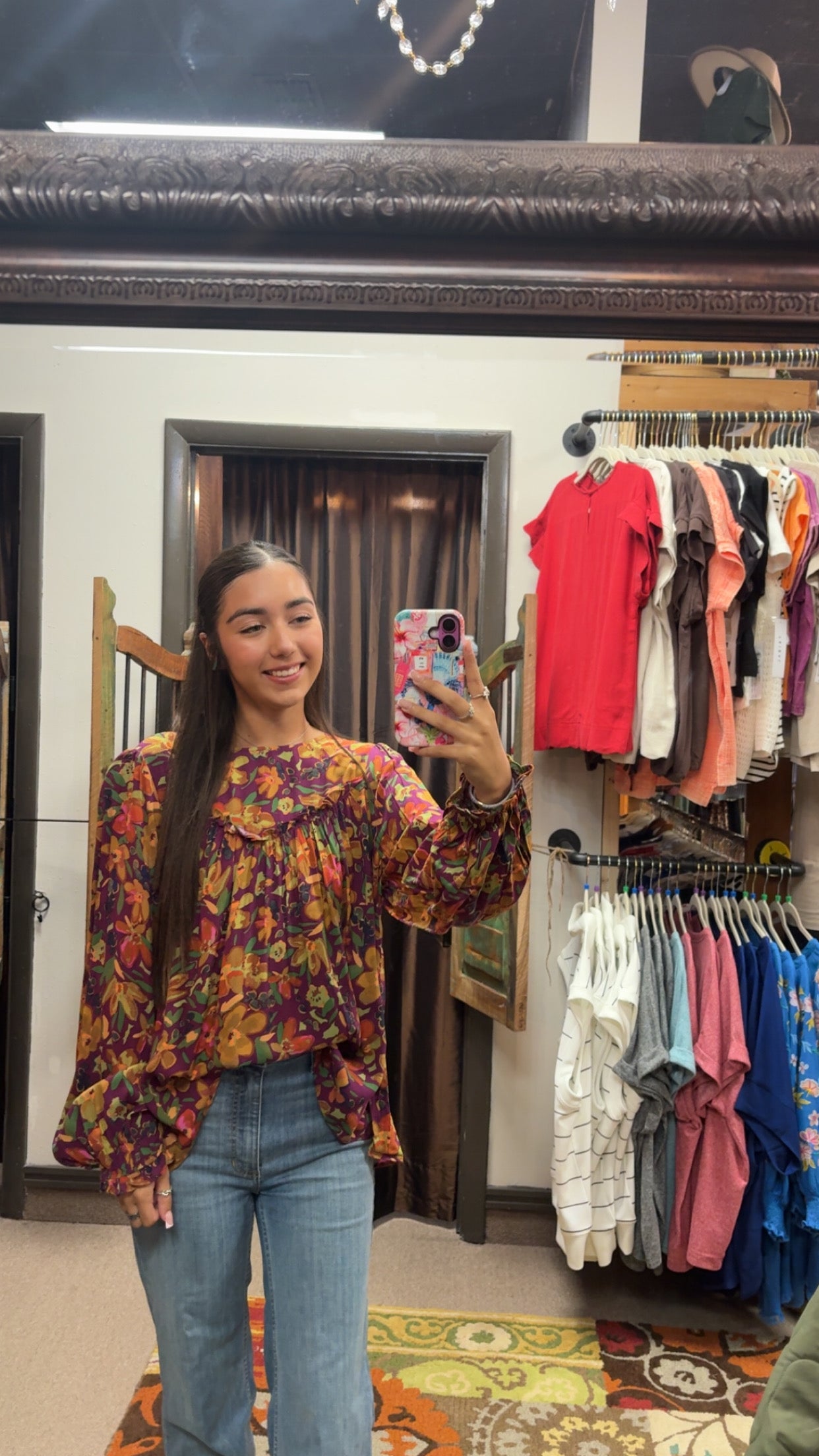 Elevate your wardrobe with this Printed Rayon Challis Babydoll Top, featuring a refined round neckline and elegant long puff sleeves finished with elastic cuffs. The vibrant multicolor floral print adds a sophisticated touch, while the lightweight, flowy fabric ensures comfort and effortless movement throughout your day. Perfect for a polished yet relaxed look.