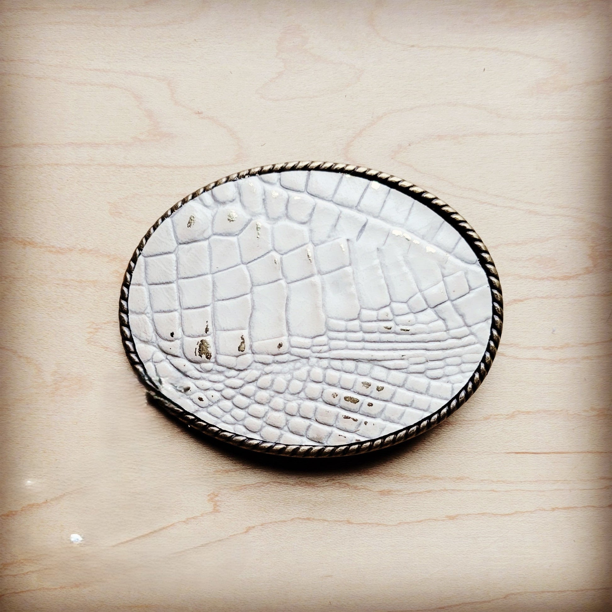 **Rope Edge Leather Belt Buckle White & Gold Gator 903s