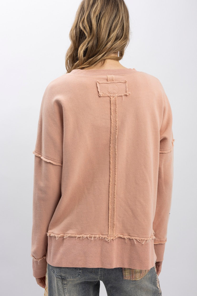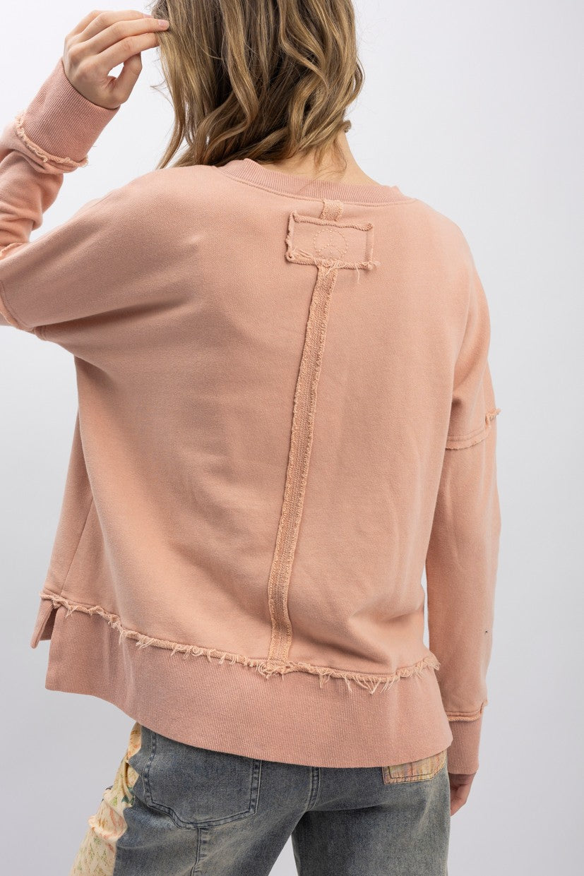 Embrace effortless comfort in this laid-back pullover, crafted from soft French terry knit with a mineral-washed finish for that perfectly lived-in feel. The relaxed fit and dropped shoulders create an easy, flowing silhouette, while raw seaming details and subtle side slits add understated edge. Perfect for those days when you want to look intentionally cool without trying too hard.