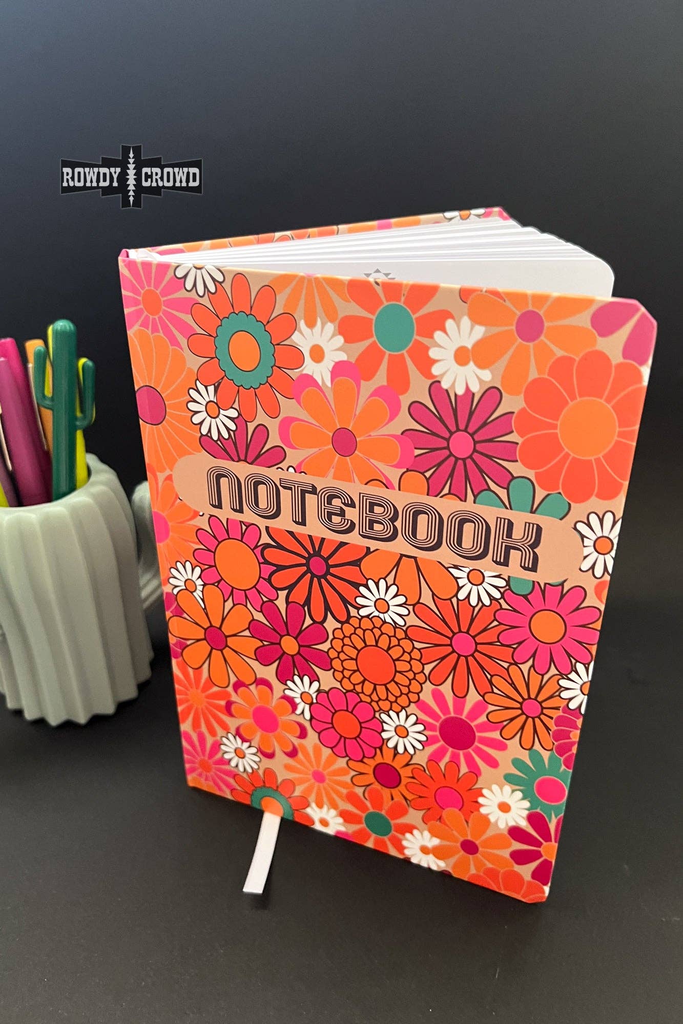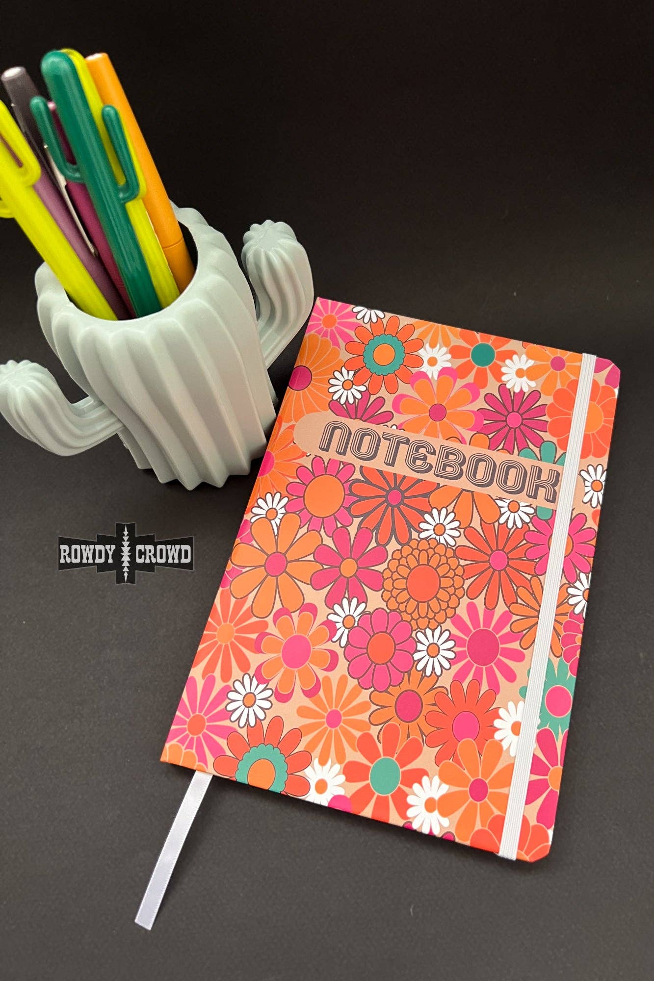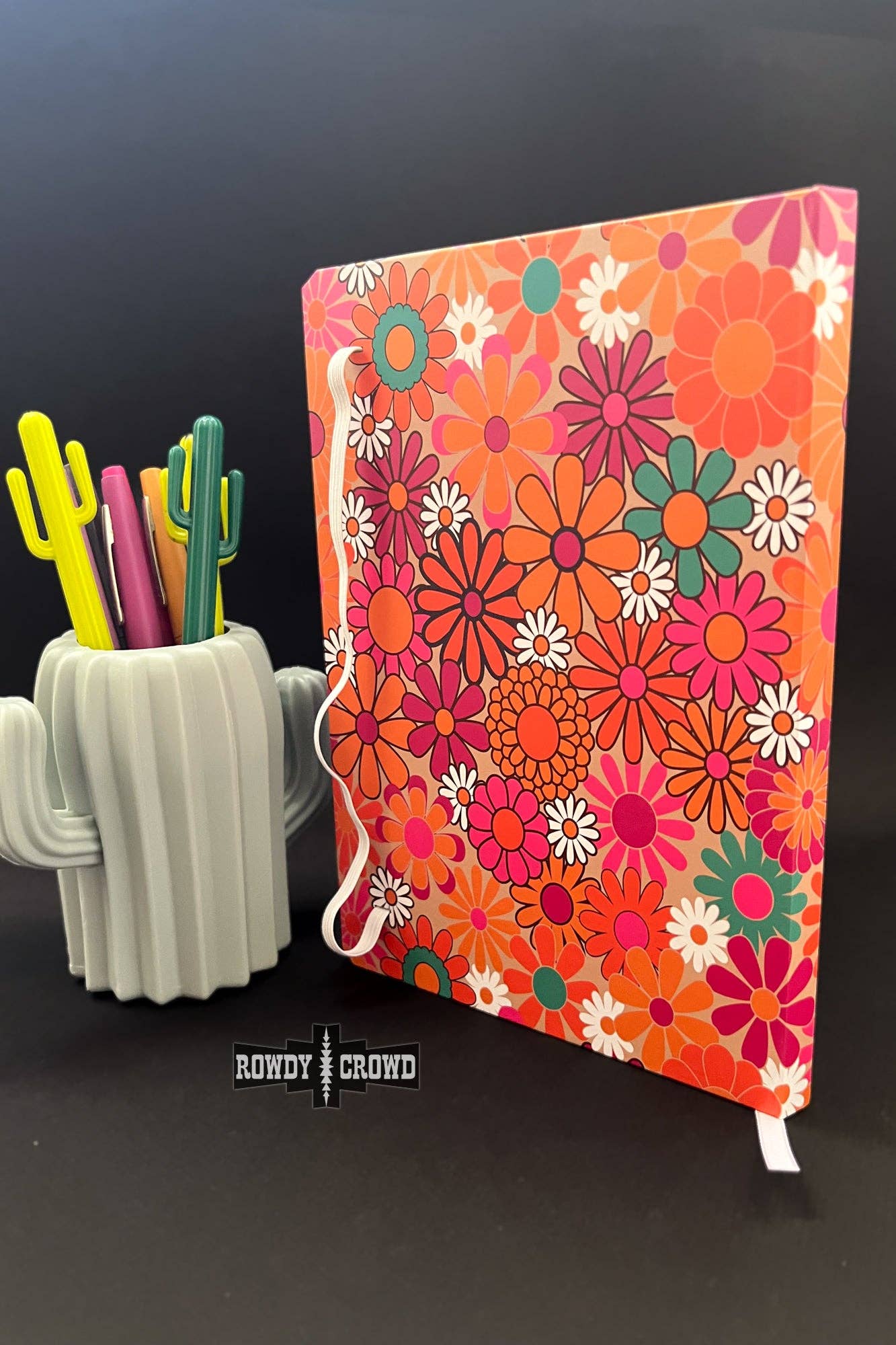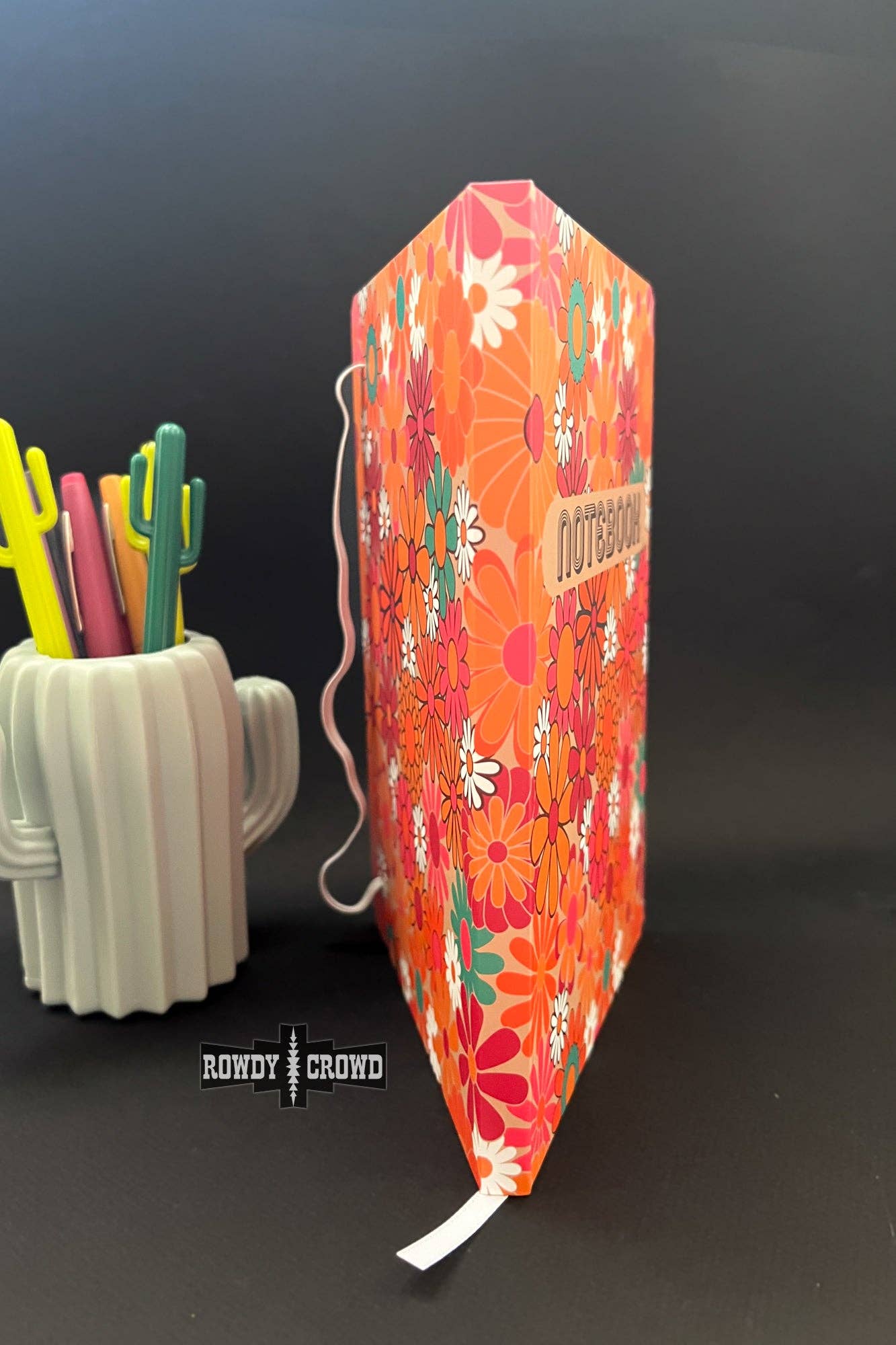 Let your ideas bloom with our Soul Blossom Notebook! With a fun, bright floral design that includes oranges, turquoise & pinks, enjoy jotting down anything everything. This notebook includes 64 pages, lined on front and back with a fun aztec print on the top of each page, and a hard front and back cover! It also has a fabric ribbon page marker and elastic band for closure.